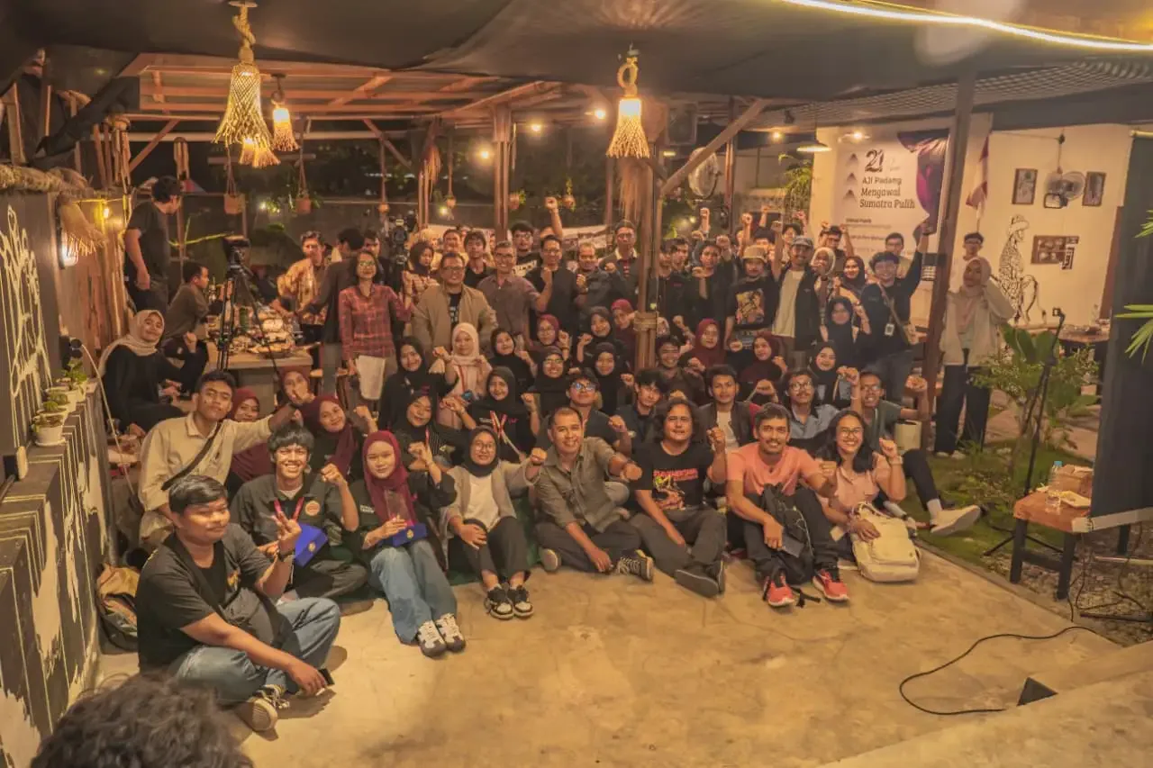 Peringatan HUT ke-21 AJI Padang digelar bersamaan dengan diskusi publik lintas sektor yang melibatkan jurnalis, akademisi, aktivis lingkungan dan HAM, komunitas pendidikan, kelompok perempuan serta mahasiswa dan masyarakat umum.